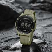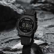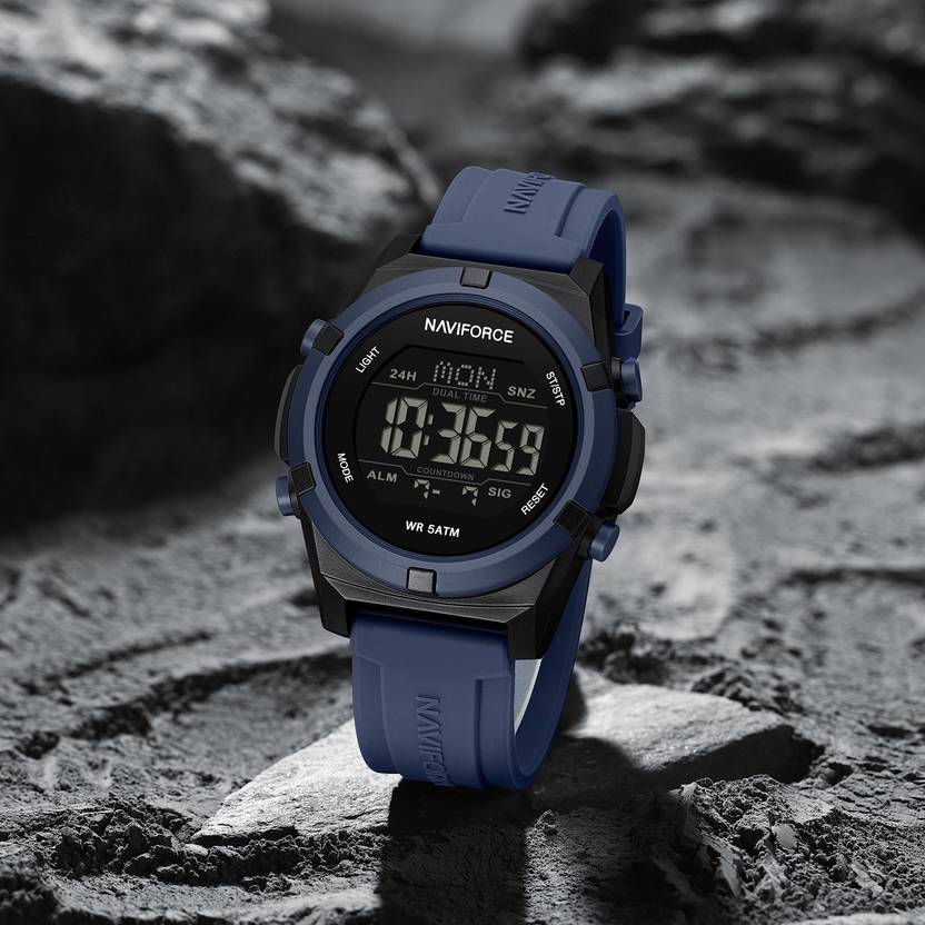 Built for adventure and everyday toughness, this digital tactical watch delivers a bold military-inspired design with reliable functionality. The round digital dial features a clear, easy-to-read display showing time, seconds, day, and date, along with dual time support for added convenience. The rugged blue case and matching silicone strap give the watch a strong outdoor identity, while the black inner bezel adds contrast and depth. Designed for comfort and durability, the soft yet sturdy strap ensures a secure fit during long wear, workouts, or outdoor activities.