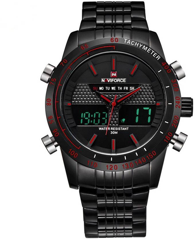 NAVIFORCE Steel Quartz Clock Digital LED Army Analog-Digital Watch - For Men