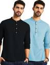 Navkanj Pack of 2 Men Solid Cotton Blend Asymmetric Kurta (Dark Blue)
