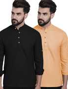VISHAL TREND Men Solid Pure Cotton Straight Kurta  (Beige)