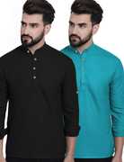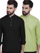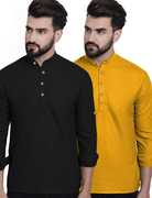 Navkanj Pack of 2 Men Solid Cotton Blend Asymmetric Kurta  (Yellow)