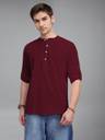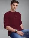 FireFish Men Solid Cotton Blend A-line Kurta (Maroon)