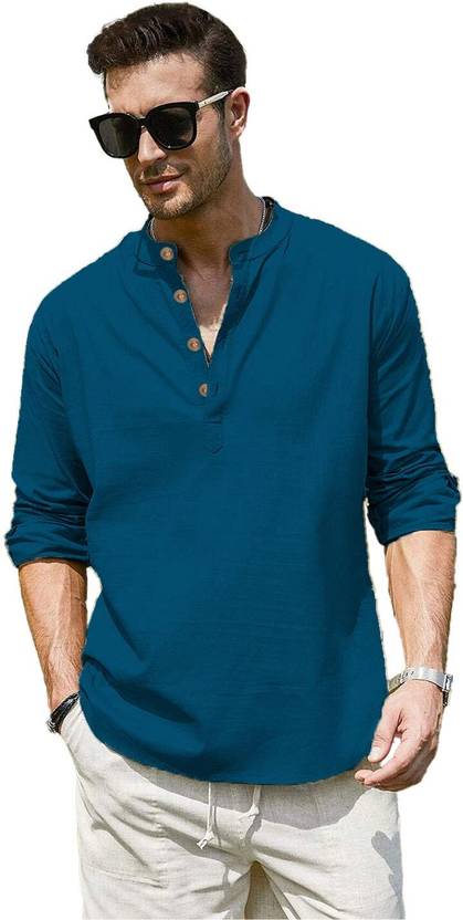 This pure cotton beige short kurta is perfect for men who value style and comfort. Its versatile design makes it ideal for any occasion—festivals, parties, or casual outings. Product Details 📋 👨‍🦰 Gender: Men 🎨 Pattern: Solid 🧵 Design Type: Plain 🔘 Closure: Button 👕 Sleeve: Full Sleeve (Roll-Up Option) ⬆️ Waist Rise: Mid-Rise 🪡 Collar: Mandarin/Chinese ✂️ Hemline: Curved 🌿 Fabric: Pure Cotton 📏 Product Length: Short 📦 Pack of: 1 Material & Care 🧺 Fabric: 100% Cotton Wash: Suitable for hand wash and machine wash. How to Style 🎯 Pair it with dark-wash denim or linen trousers for a casual look. Dress it up with a pair of churidar or slim-fit pants for festive occasions. Add leather sandals or loafers and a wristwatch for a classy finish. Roll up the sleeves for a relaxed vibe during daytime events. This short kurta seamlessly blends traditional elegance with modern styling, making it a wardrobe essential for every man! 👌
