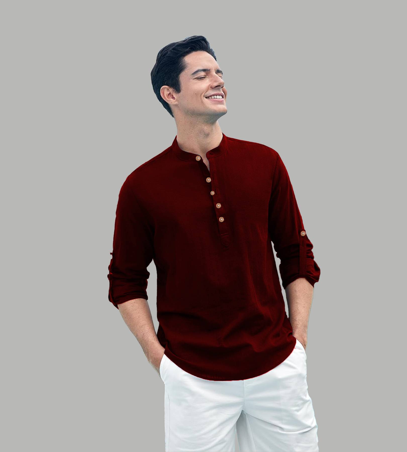 Navkanj Men Solid Straight Kurta (Maroon)