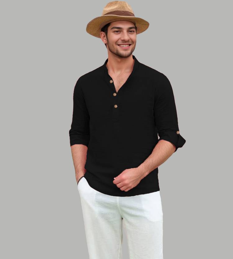 This pure cotton beige short kurta is perfect for men who value style and comfort. Its versatile design makes it ideal for any occasion—festivals, parties, or casual outings. Product Details ?? ????? Gender: Men ?? Pattern: Solid ?? Design Type: Plain ?? Closure: Button ?? Sleeve: Full Sleeve (Roll-Up Option) ?? Waist Rise: Mid-Rise ?? Collar: Mandarin/Chinese ?? Hemline: Curved ?? Fabric: Pure Cotton ?? Product Length: Short ?? Pack of: 1 Material & Care ?? Fabric: 100% Cotton Wash: Suitable for hand wash and machine wash. How to Style ?? Pair it with dark-wash denim or linen trousers for a casual look. Dress it up with a pair of churidar or slim-fit pants for festive occasions. Add leather sandals or loafers and a wristwatch for a classy finish. Roll up the sleeves for a relaxed vibe during daytime events. This short kurta seamlessly blends traditional elegance with modern styling, making it a wardrobe essential for every man! ??