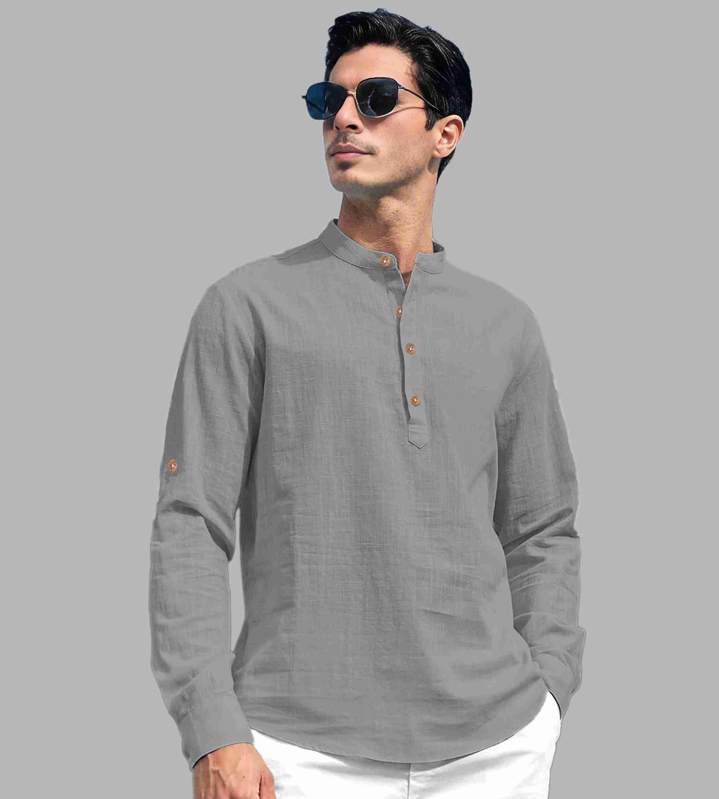 Men Solid Pure Cotton Straight Kurta (Grey)
