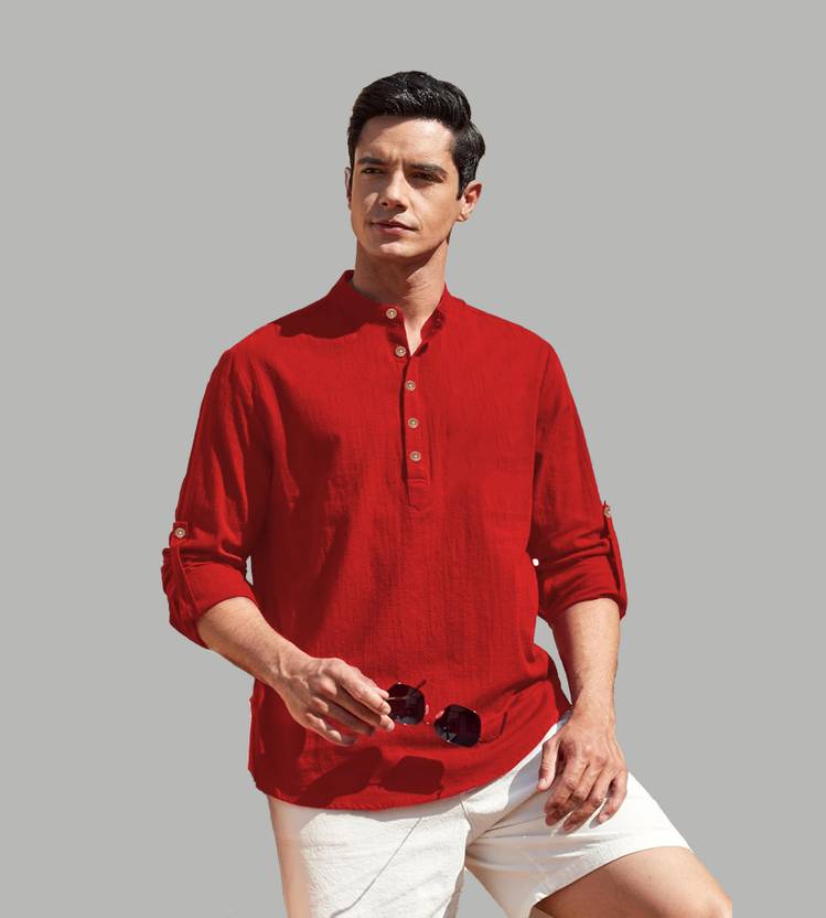 This pure cotton beige short kurta is perfect for men who value style and comfort. Its versatile design makes it ideal for any occasion—festivals, parties, or casual outings. Product Details ?? ????? Gender: Men ?? Pattern: Solid ?? Design Type: Plain ?? Closure: Button ?? Sleeve: Full Sleeve (Roll-Up Option) ?? Waist Rise: Mid-Rise ?? Collar: Mandarin/Chinese ?? Hemline: Curved ?? Fabric: Pure Cotton ?? Product Length: Short ?? Pack of: 1 Material & Care ?? Fabric: 100% Cotton Wash: Suitable for hand wash and machine wash. How to Style ?? Pair it with dark-wash denim or linen trousers for a casual look. Dress it up with a pair of churidar or slim-fit pants for festive occasions. Add leather sandals or loafers and a wristwatch for a classy finish. Roll up the sleeves for a relaxed vibe during daytime events. This short kurta seamlessly blends traditional elegance with modern styling, making it a wardrobe essential for every man! ??