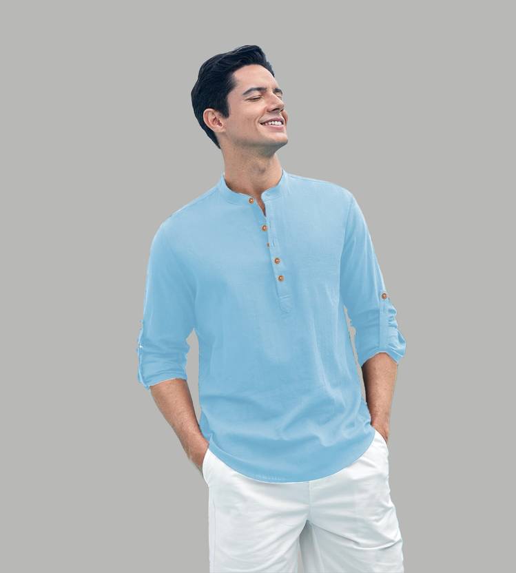 Navkanj Men Solid Straight Kurta (Light Blue)