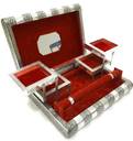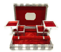 This jewellery vanity box is made from wood and embossed aluminium, combining durability with elegance. The sturdy wood provides a reliable structure, while the embossed aluminium adds a touch of sophistication. Together, they create a stylish, refined piece that complements any decor style, from traditional to contemporary.
