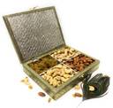 NAVRANG Panpuda Box Dry Fruit Box Diwali Gift Box Sweet Box Mukhwas Box Wood Decorative Platter (Gold)