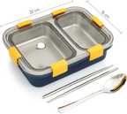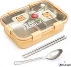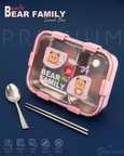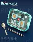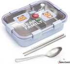 NAVTAN Bento Bear Family 2 Section Stainless Steel Lunch Box With Spoon & Chopsticks 2 Containers Lunch Box (600 ml, Thermoware)