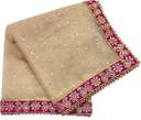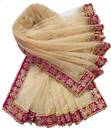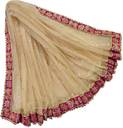 Women's Bridal Golden Net Dupatta with Pink Kerry Embroidery Border ( Border-4cm)