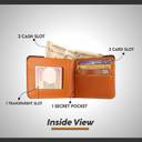 Crafted from the finest vegan leather, our wallet combines luxury with ethical sourcing, providing a stylish accessory without compromising your values., Meticulously handcrafted for a sleek and compact profile, ensuring both style and practicality in one sophisticated package., Quick and convenient identification with a transparent slot, 1 hidden compartment for essentials and 2 compartments for currency notes adding a touch of functionality to the wallet's design., Stay organized with multiple card slots, offering ample space for your essentials while maintaining a minimalist aesthetic., Elevate the unboxing experience with a premium box, reflecting the quality and attention to detail synonymous with our brand.
