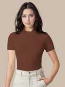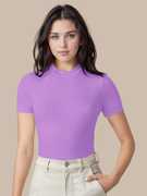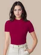 Maheshvi Casual Polyester Blend High Neck Short Sleeves stylish Maroon Top(17"Inch)