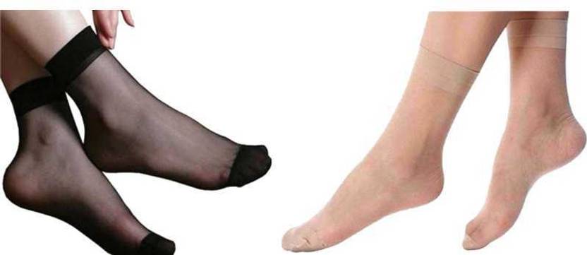 Ultra-Thin Transparent Sheer Net Ankle Length Women/Girl Socks( 1 Black and 1 Skin)