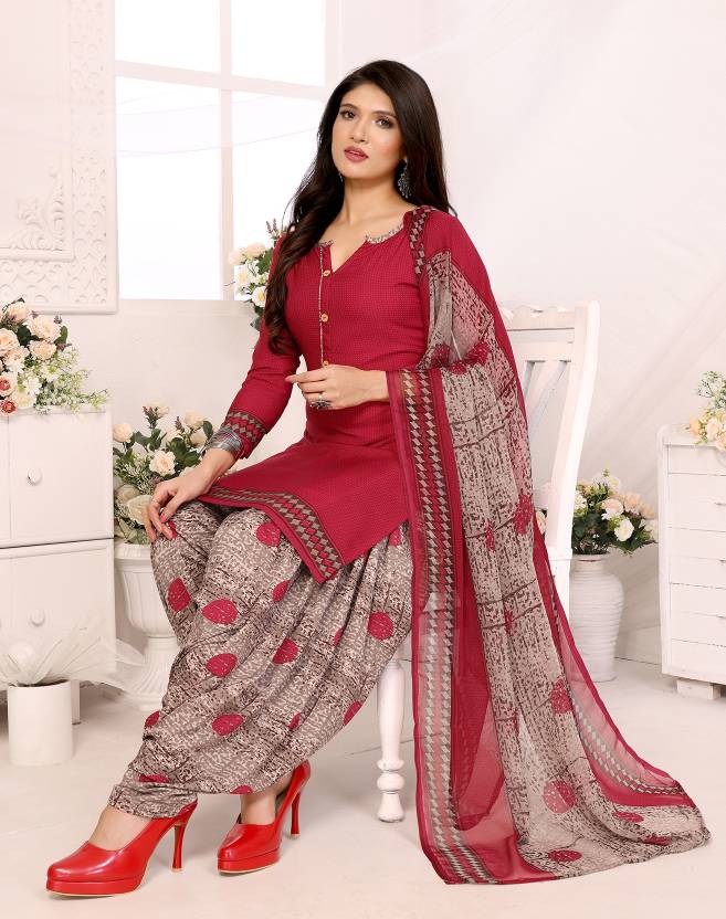 Flaunt a new ethnic look with this dress material. This Italian Leon Crepe suit is beautifully adorned with Print work comes along with solid Italian Leon Crepe bottom and martina chiffon dupatta makes it appear more adorning. Women can buy this suit to wear for their upcoming festivals, homely functions, parties, kitties, weekend get together. Get this unstitched suit stitched according to your fit and comfort. Team it with stylish accessories to make your looks more beautiful. Note:- The actual product may differ slightly in color and design from the one illustrated in the images when compared with computer or mobile screen.
