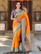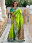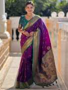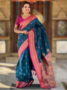 Nayanthara Trends Woven Paithani Silk Blend Saree  (Green)