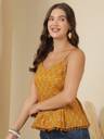 Women Printed Pure Cotton Flared Kurta (Yellow)