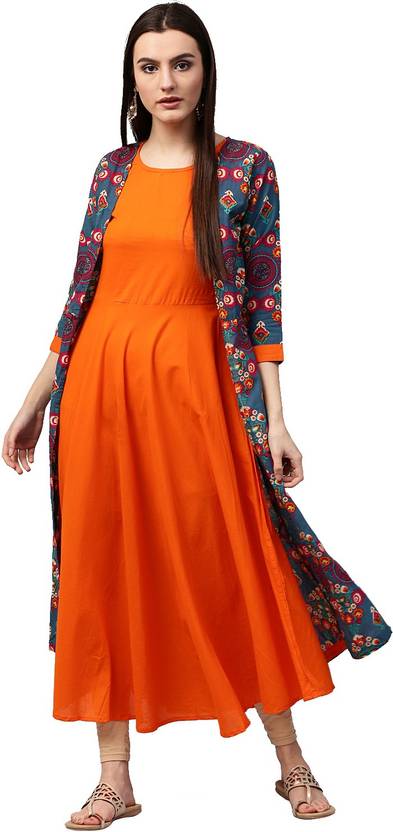 Nayo Women Printed A-line Kurta (Blue)
