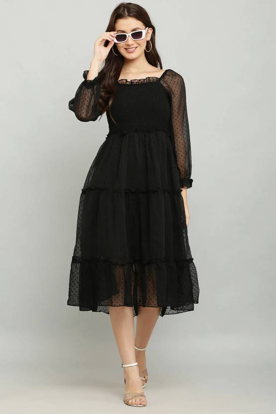 Nazimpex Women A-line Black Midi/Calf Length Dress