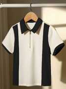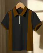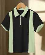 Men Colorblock Zip Neck Cotton Blend Black, Beige T-Shirt