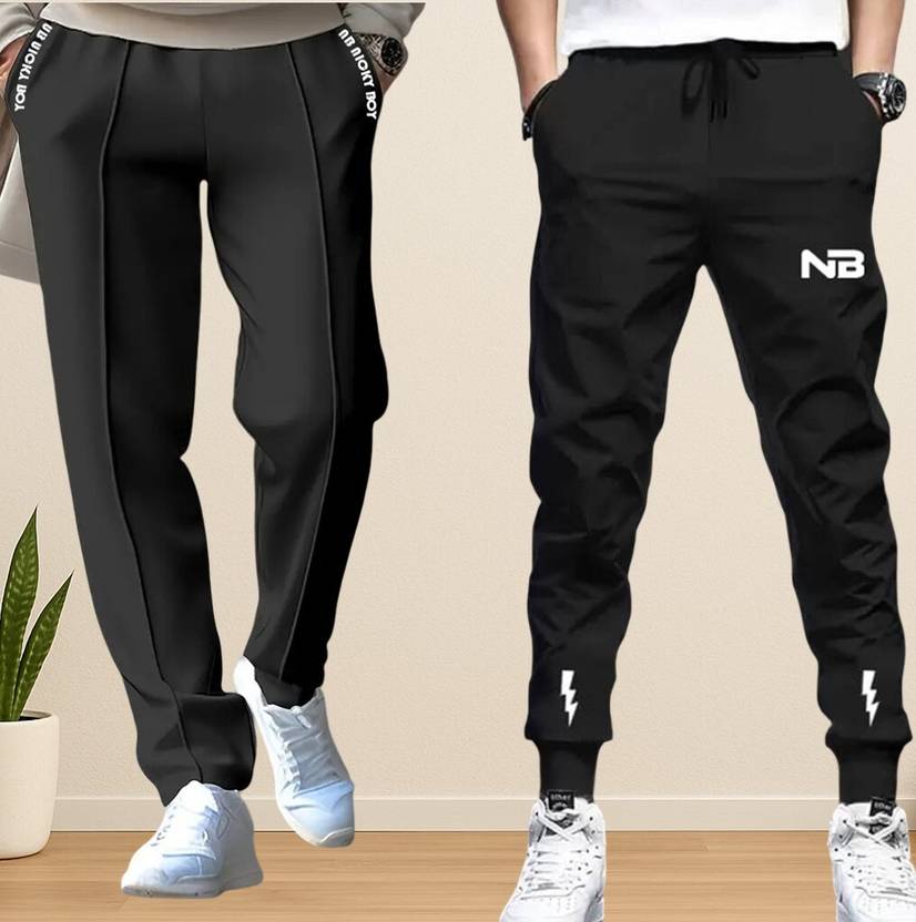 Pack of 2 Men Solid, Printed Black, Black Track Pants