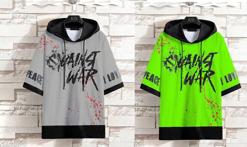NB NICKY BOY Pack of 2 Men Typography Round Neck Cotton Blend Grey, Light Green T-Shirt