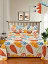 NCS Cotton Double Flat 300 TC Floral Bedsheet (Pack of 1, 1 Bedsheet + 2 Quilted PillowCover + 2 Quilted CushionCovers with Filler)