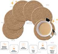 NCS Round Reversible Jute Coaster Set (Pack of 6)