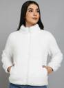 Featuring a zip-up front and high neck collar, this jacket boasts a plush, fluffy texture and an all-over pastel color pattern in soft hues of pink, blue, yellow, and cream. Perfect for layering on chilly days, it offers both comfort and charm for everyday wear or lounging.