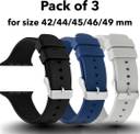 NECESORIES Pack of 3 Steel Buckle Silicone Strap Compatible with Apple iWatch series 11 | series 10 46mm | series 9/8/7/ 45mm | series 6/5/4 44mm | ultra 1 & 2 49mm Smart Watch Strap (Mullti Color)