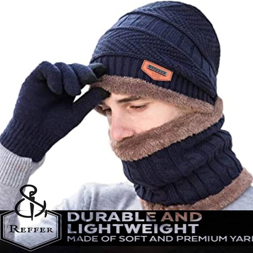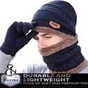 Stylish Woven Beanie Cap with Neck Scarf Winter Scarf Set with Fur Inside