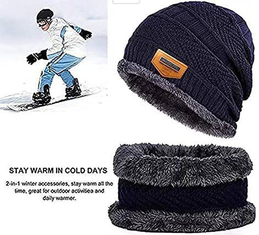 Winter Woolen Warm Unisex Bannie Knit Skull Cap with Neck Warmer
