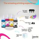 "-L130, L220, L310, L360, L365, L380, L405, L655, L1300, L1455, L110, L210, L300, L350, L355 ink tank printers. -Proudly Made in India. Enjoy High Yield performance of 10000 pages with 5% coverage Per 100 ml. - “NEEDLE” Premium Ink Refill is perfect for hassle-free refilling & offers sharp, clear, smudge free & long lasting prints. It has been specially formulated with high quality chemicals to offer excellent colours and vivid printing performance. It is perfect for color and monochrome prints. The Aqueous ink produces bright and vivid color, which is in high saturation, good permeability, excellent water-fastness and light-fastness, fast drying, Water resistance and no fading. - Easy to Refill: The ink refill by “NEEDLE” can be Easily Refilled by Directly Inverting and inserting the Refill ink bottle to the respective color Ink tank. No longer have the troubles of refilling ink."