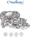6 Pcs Dinner Plate, 6 Pcs Quarter Plate, 6 Pcs Katori, 6 Pcs Halwa Plate, 6 Pcs Glasses, 1 Pcs Salt & Pepper Containers, 3 Pcs Cook & Serving Pot, 3 Pcs Cook & Serving Pot Cover, 12 Pcs Baby Spoon, 1 pc Jug, 1 Pc Rice Tray, 1 Pc Rice Spoon, 3 Pcs Serving Spoon.
