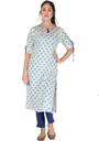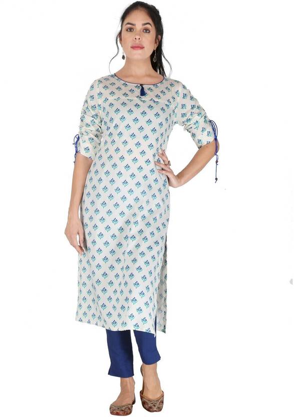 Women Printed Viscose Rayon Straight Kurta (White, Blue)