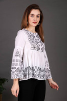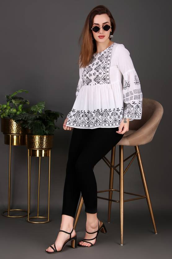 Owing to its viscose rayon material, this top is built to withstand regular wear while maintaining its appearance. The fabric resists fading and retains its shape, ensuring longevity even after multiple washes. Courtesy of its thoughtful construction, this top remains soft against the skin, providing comfort throughout the day.
