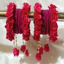 Haldi Flower Latkan Velvet Ball Chain Bangles Rani 4