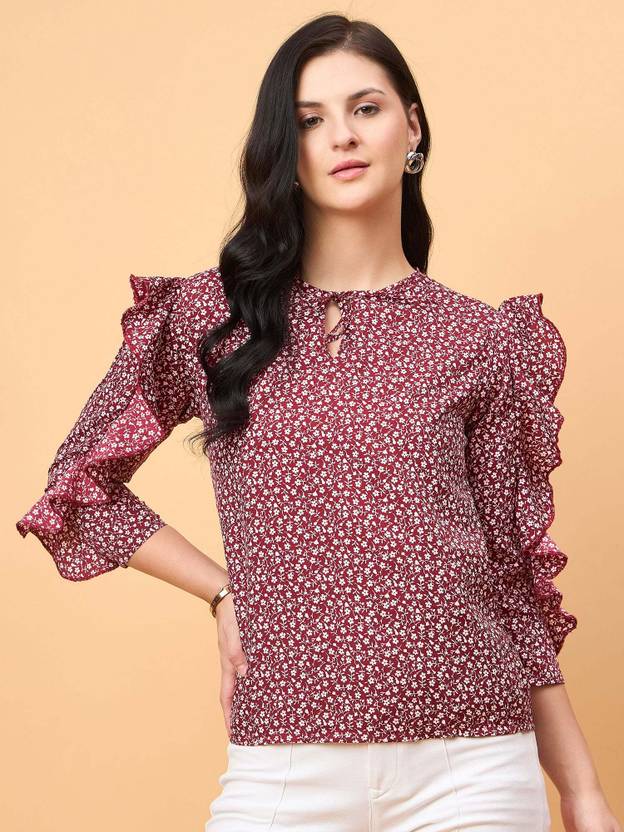 Neesh Casual Printed Women Maroon, White Top