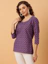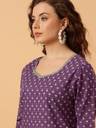 Women Printed Cotton Blend Straight Kurta (Purple, Beige)