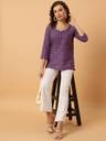 Neesh Women Printed Straight Kurta (Purple, Beige)