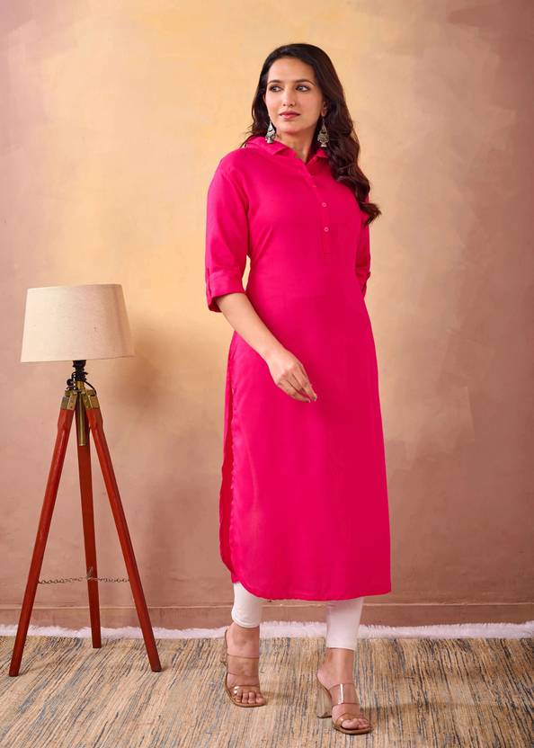 NEEYAMI Women Solid Straight Kurta (Pink)