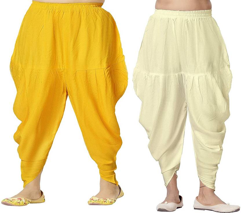 Women's Rayon Solid Dhoti Pant Yellow & Cream