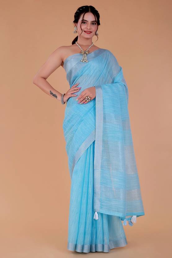 Negroni Brand Presents Linen Fabric Based Saree With Matching-Tone Latkans And An Unstitched Blouse Piece, Crafted In A Soft And Lightweight Texture For Comfortable Everyday Wear.