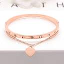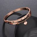 Roman Numerals Heart Pendant Charm Bangle Bracelet For Women And Girls