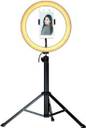 (Note Tripod Not Include ) 3 Light Modes 10" Ring Light The 10 inch led ring light is with 3 lighting modes & 10 adjustable brightness for your choose, 3 light modes: white, warm yellow, warm yellow + white, each lighting mode has 10 brightness level which can meet all your needs in different circumstances. ? Flexible Lazy Bracket Holder Sturdy phone clip is used together with 8.46 inches/21.5 centimeters flexible soft tube, which allows it to be adjusted to optional viewing angle when in use. The smartphone cradle spring loaded clamping jaws open from 2.24 to 3.42 inches/5.7 to 8.7 centimeters which compatible with All Mobiles & Cameras.