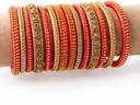 Royal Style Silk Thread Orange & Gold Bangle Set - Pack of 14