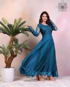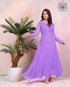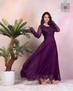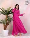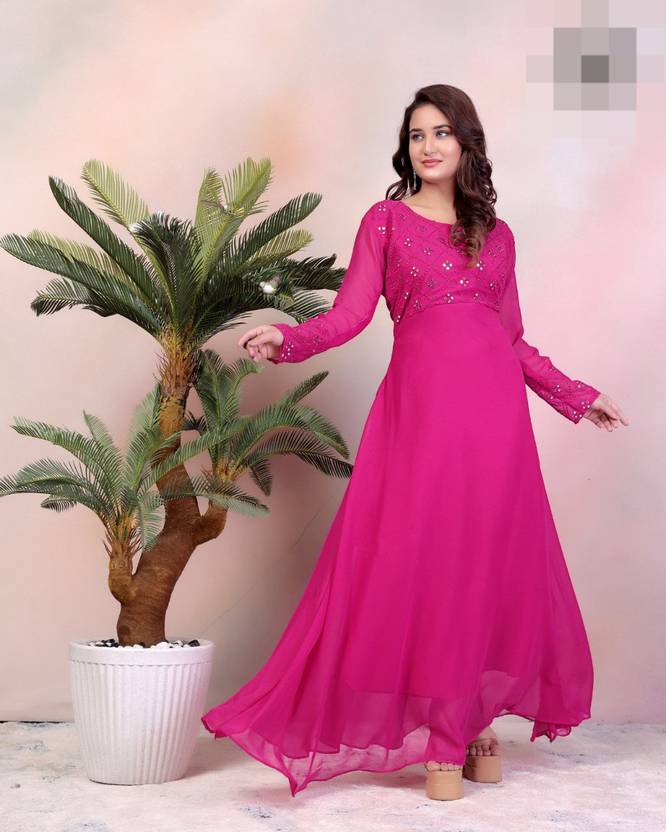 Embroidered Georgette Stitched Flared/A-line Gown (Pink)