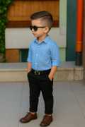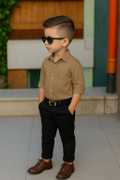Stylish Kids' Outfit – Cotton Shirt & Twill Spandex Pants Set for Boys