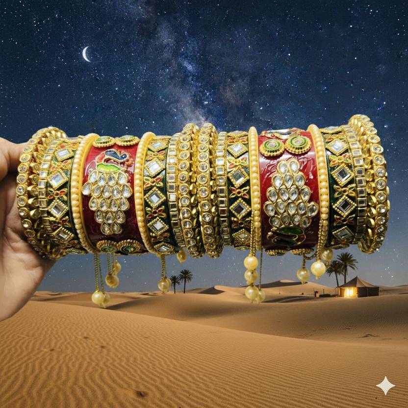 Kundan, Peacock, Pearl, Traditional Bangle Set, Partywear, Studded